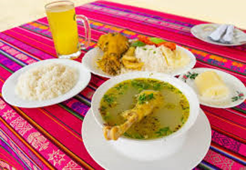 El sabroso caldo de gallina de campo, acompañado de papas y tostado termina, siendo lo mejor que el paladar pueda saborear.